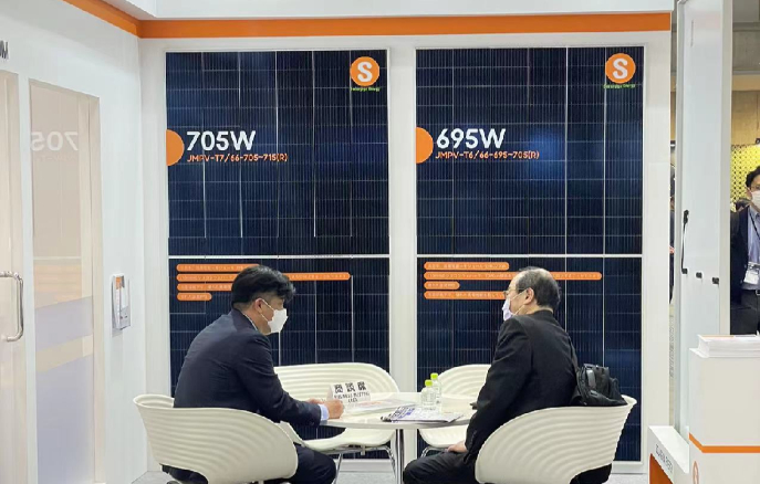 其中旗艦產(chǎn)品210N型HJT單玻半片組件功率最高可達(dá)705W,效率更是突破23.02%,可為日本市場(chǎng)帶來(lái)更加高效、高能的全新體驗(yàn),并擁有5-10倍的IEC標(biāo)準(zhǔn)檢測(cè),以及優(yōu)異的抗PID性能;210N型TOPCON單玻半片組件采用66片設(shè)計(jì),功率達(dá)到695W,作為成熟市場(chǎng)的優(yōu)質(zhì)之選,可提供12年質(zhì)量保證和30年發(fā)電效率保證。除此之外,其他4 款差異化的產(chǎn)品也獲得了眾多觀眾的青睞。