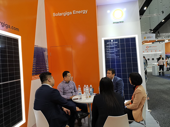 本次展會(huì),錦州陽光能源有限公司攜帶60型-335W等高效組件參加展會(huì),展臺(tái)上的展品吸引了許多國內(nèi)外和當(dāng)?shù)毓夥鼜臉I(yè)者的駐足關(guān)注。